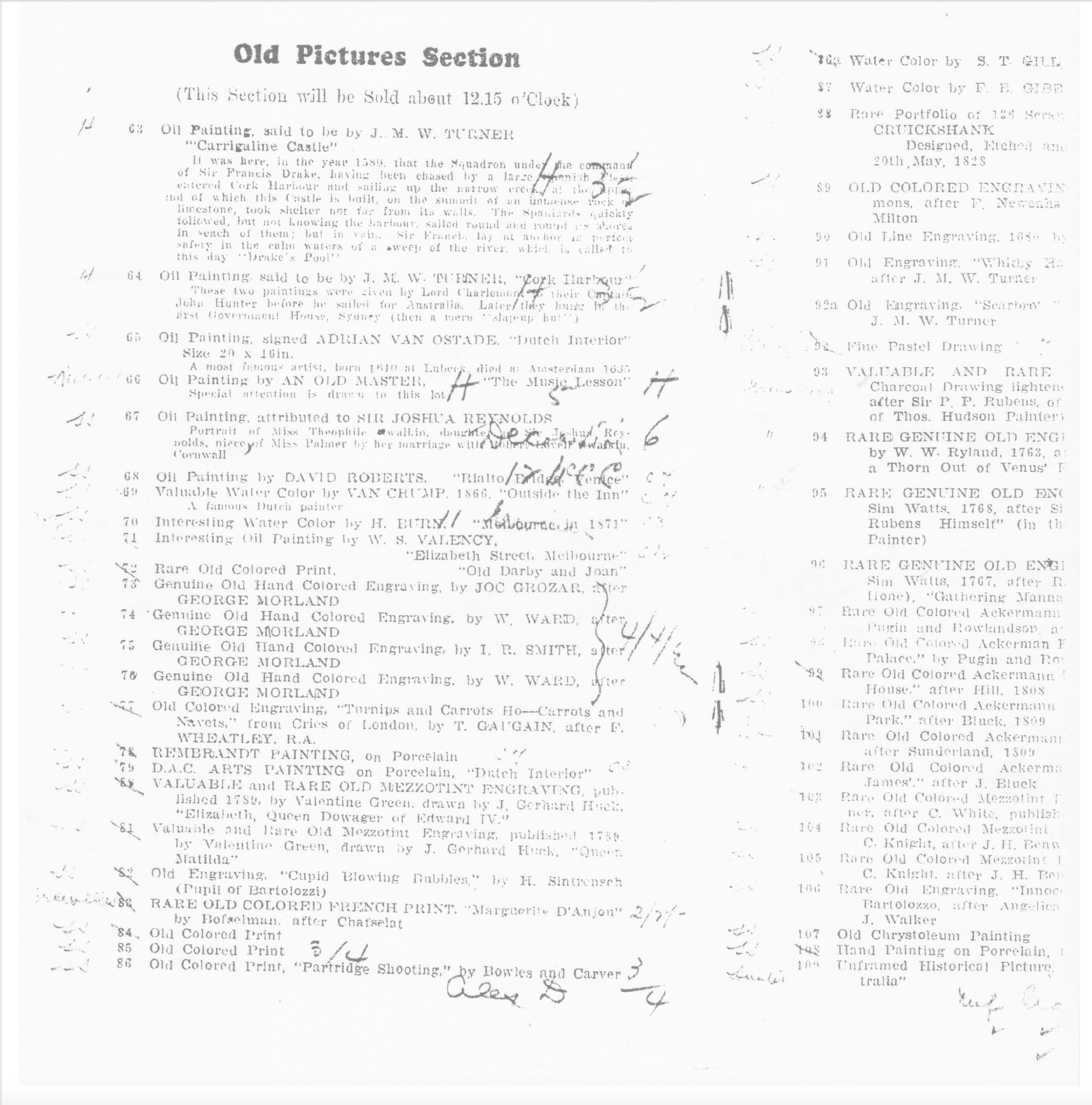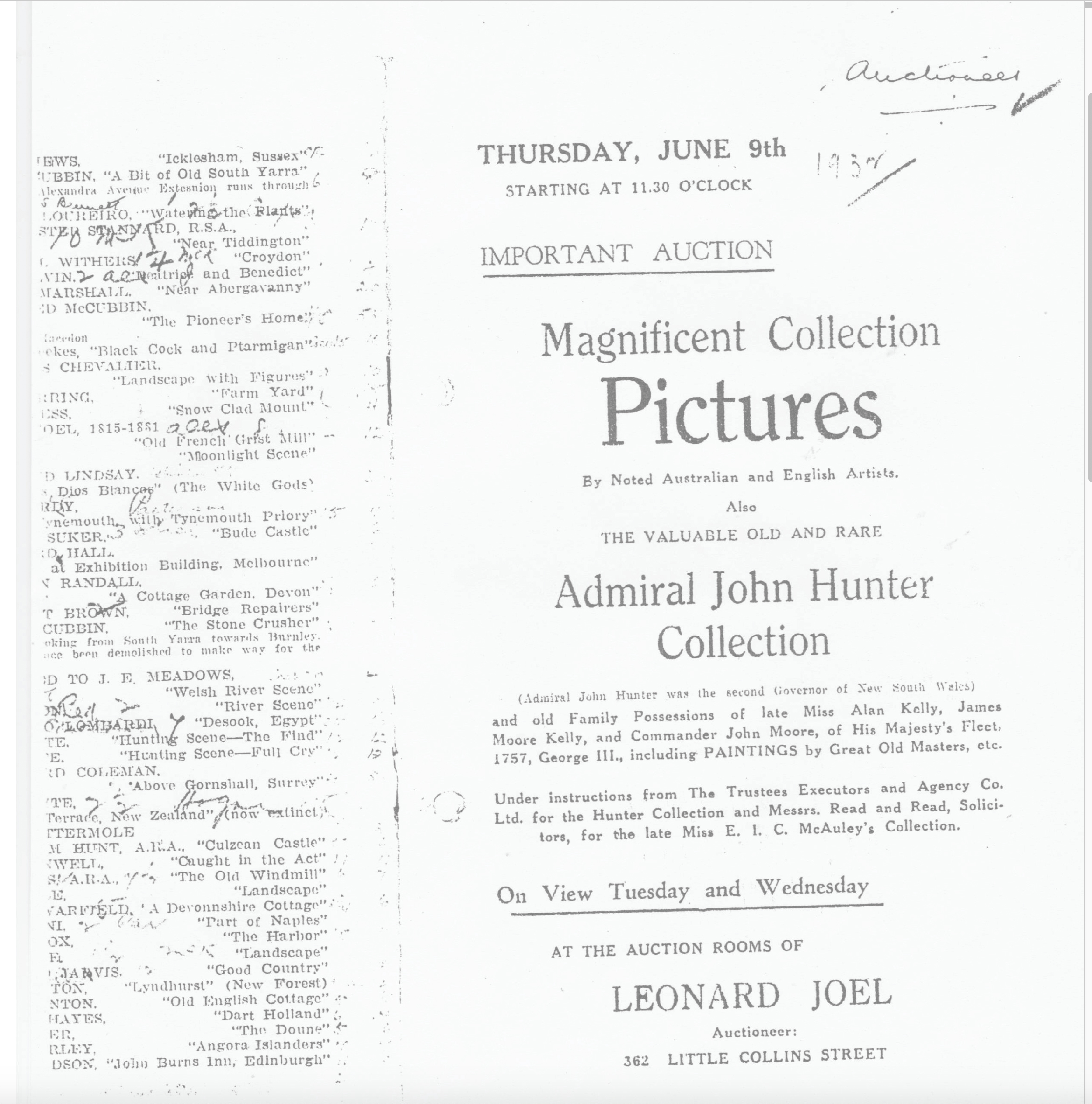 Under instructions from The Trustees, Executots and Agency Co. Ltd, for the Hunter Collection and Messrs. Read and Read, Solicitors, for the late Miss E.I.C McAuley’s Collection."